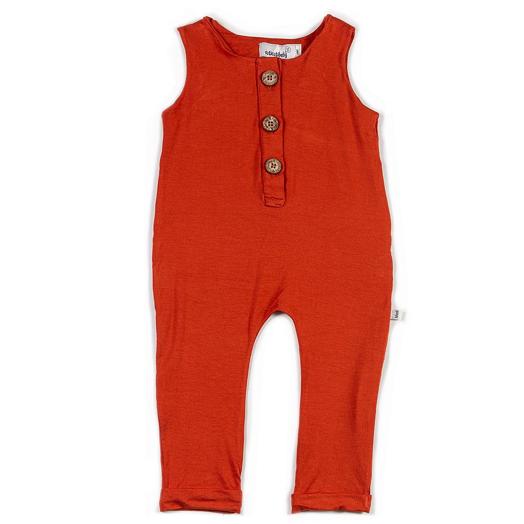 Macacão com modelagem saruel, mais folgadinho na parte de baixo. Manga cavada, barra italiana dobrada e aplicação de botãozinho natural de coco na parte da frente. Feito em malha super fresquinha.