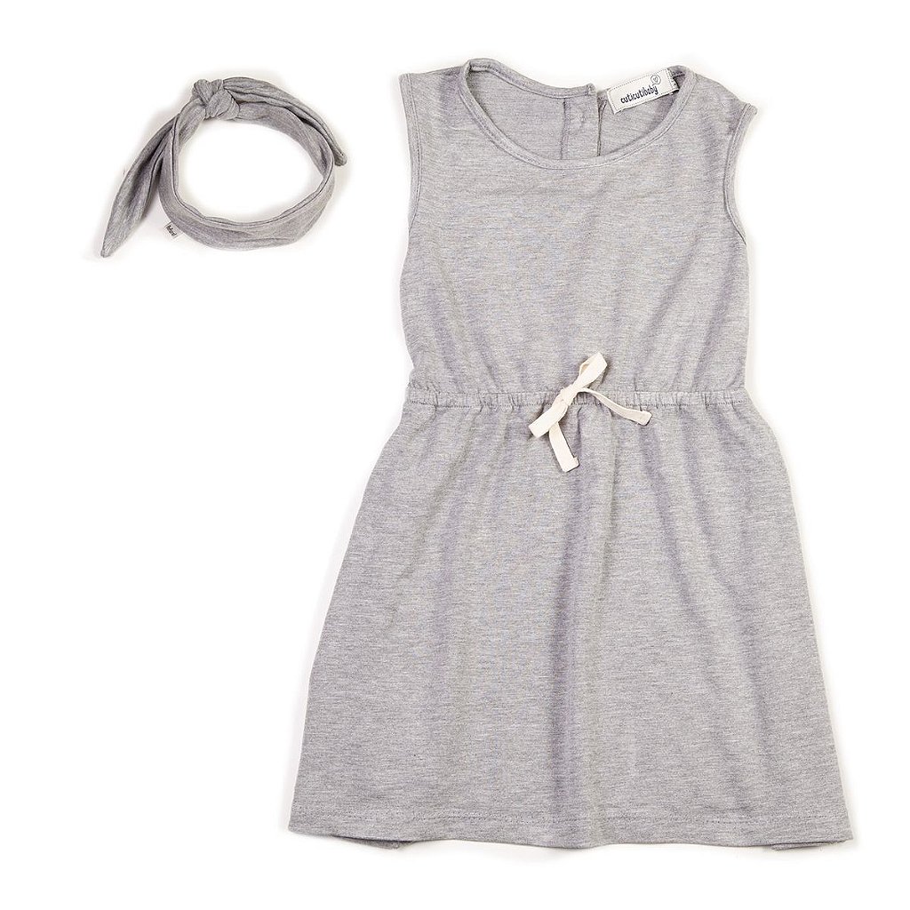 Vestido de malha soltinha, perfeito para o Verão. Sem manguinhas, com elástico na cintura e lacinho cru de algodão. Nas costas tem botãozinho de madeira rústica para facilitar na hora de colocar. Acompanha faixinha do mesmo tecido.